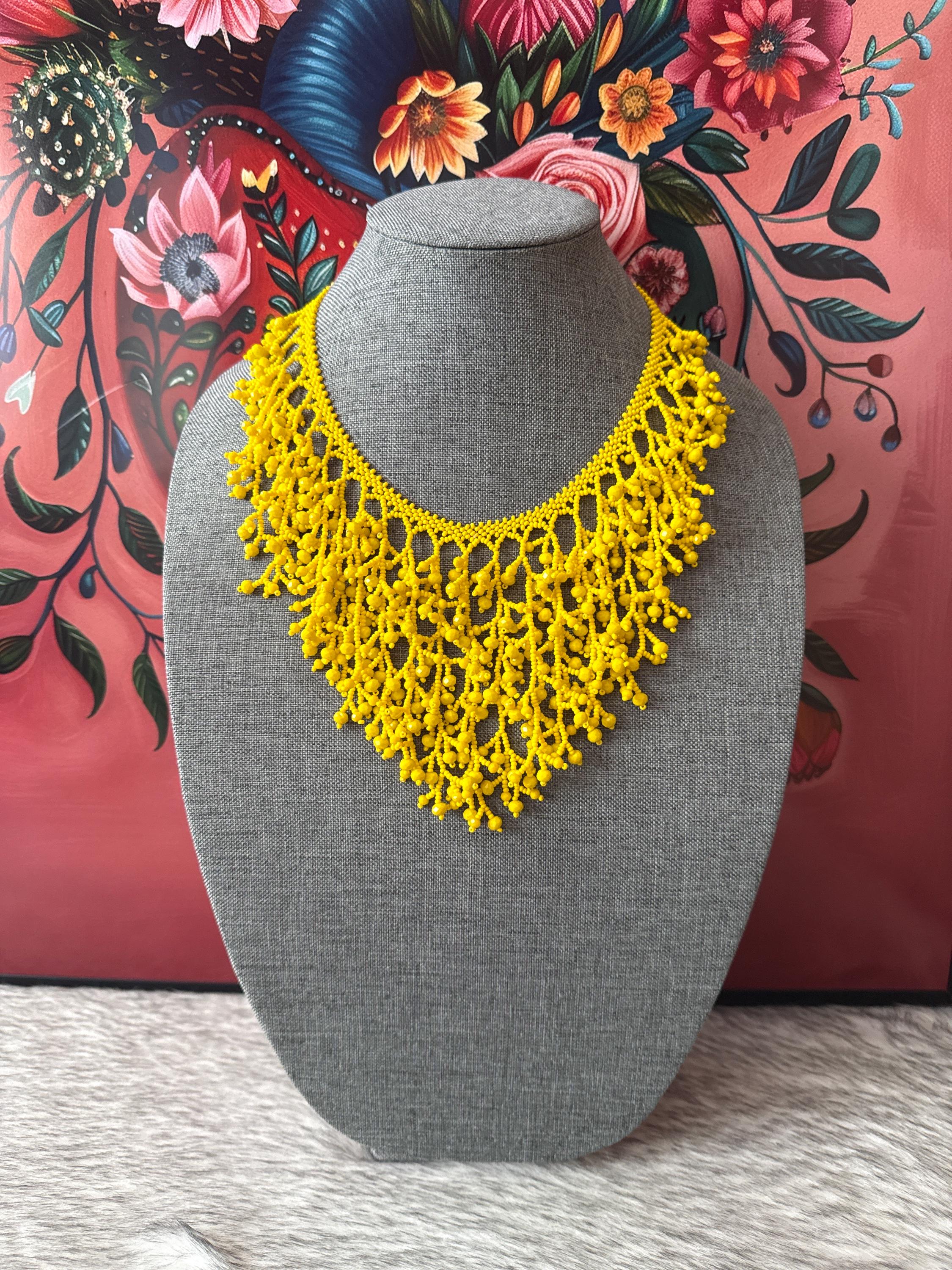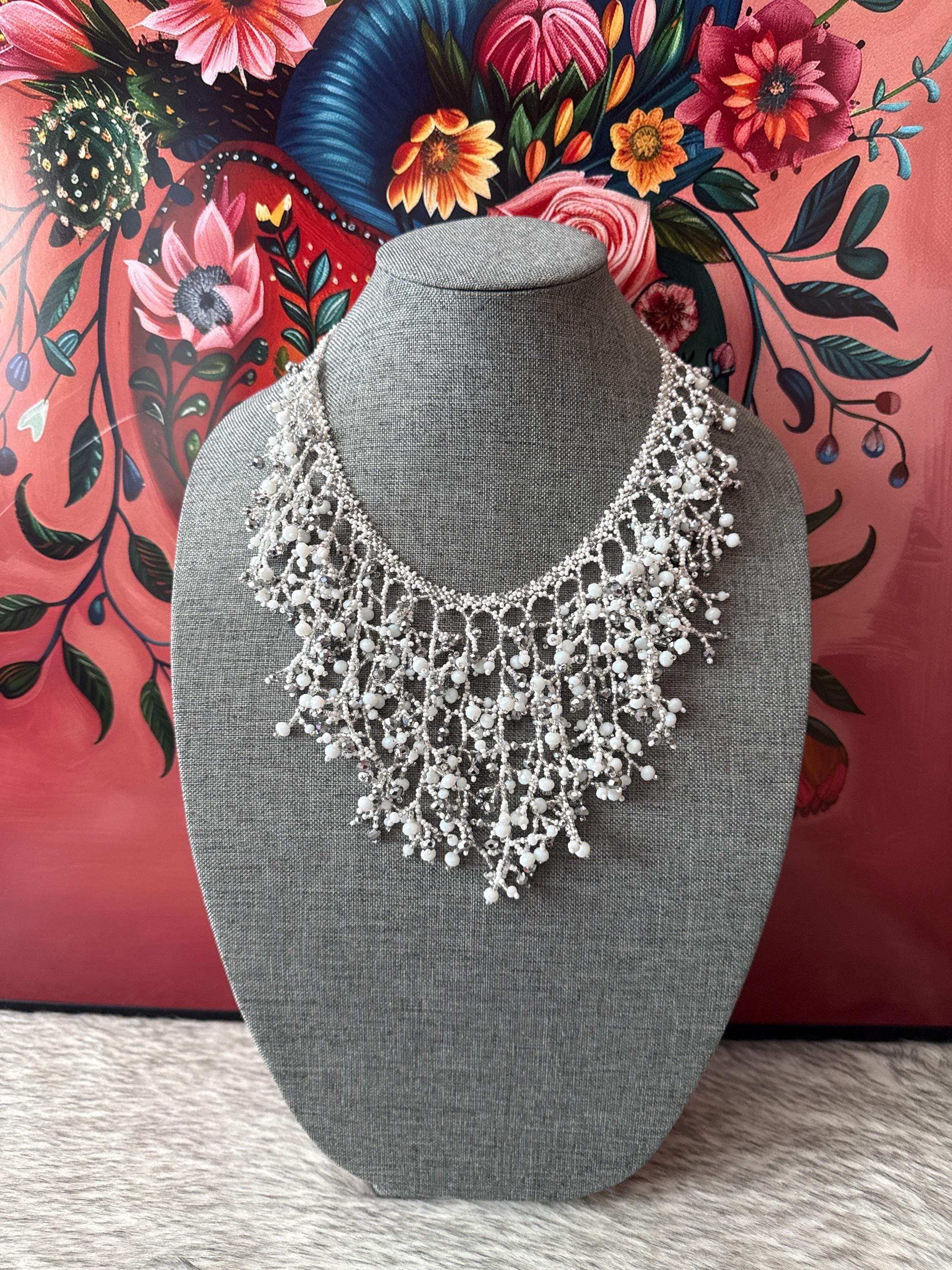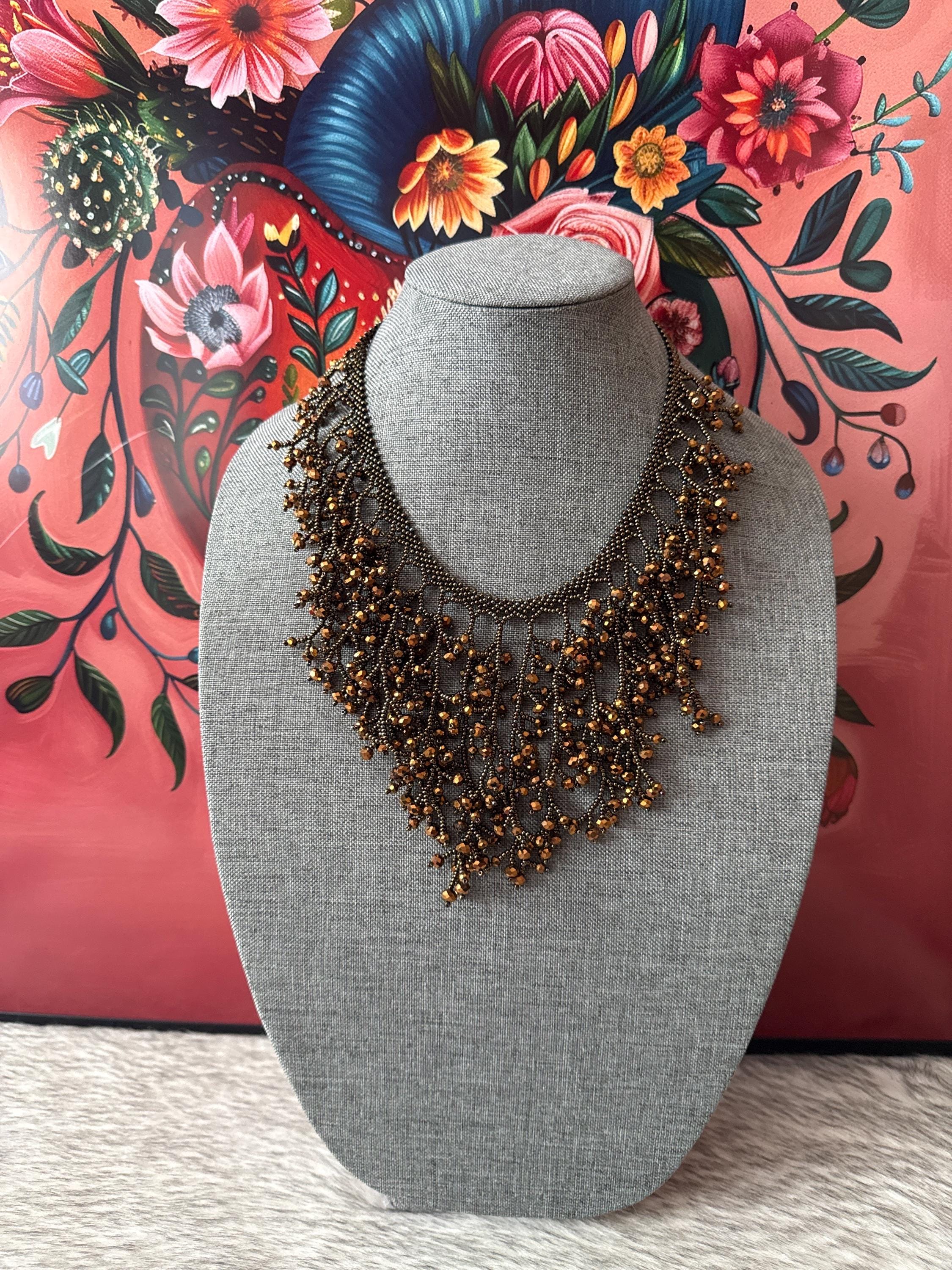 Beautiful handmade jewelry set with glass beads called chaquiras, handmade by Mexican artisans.