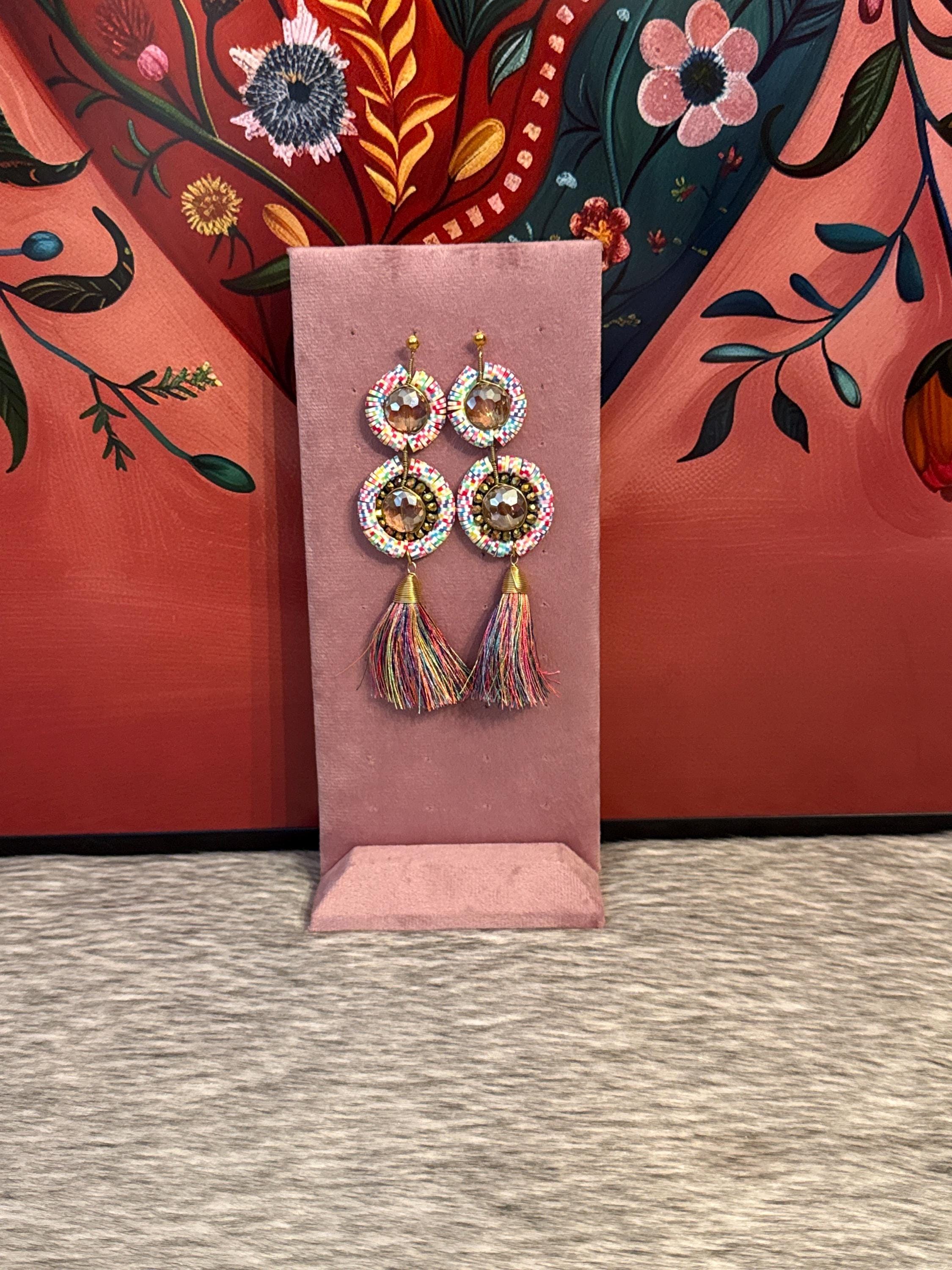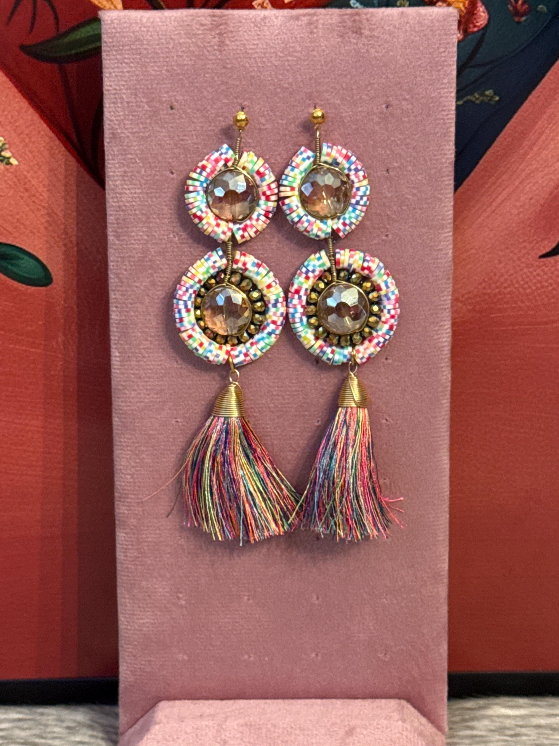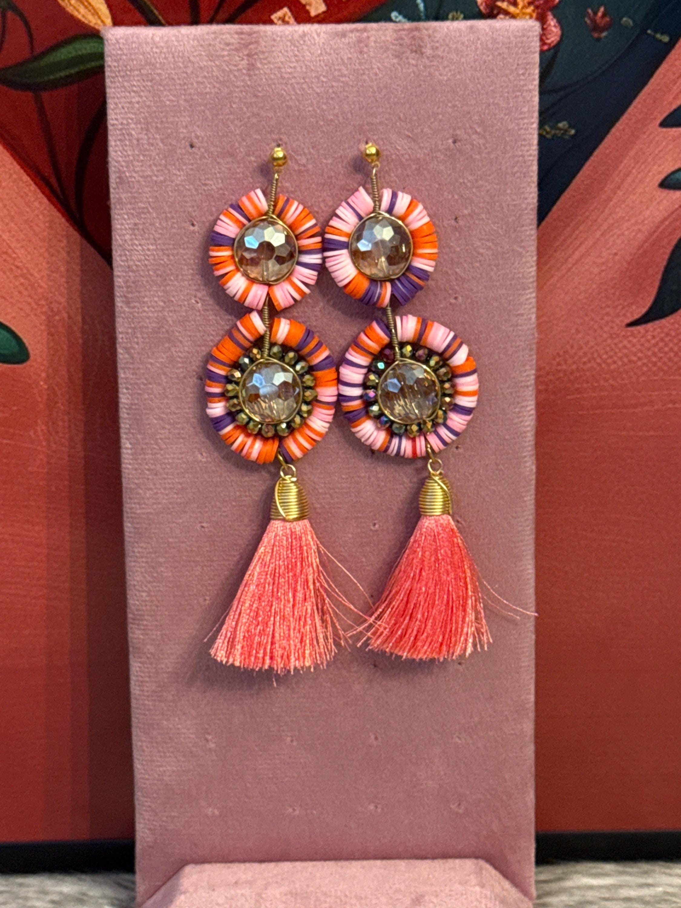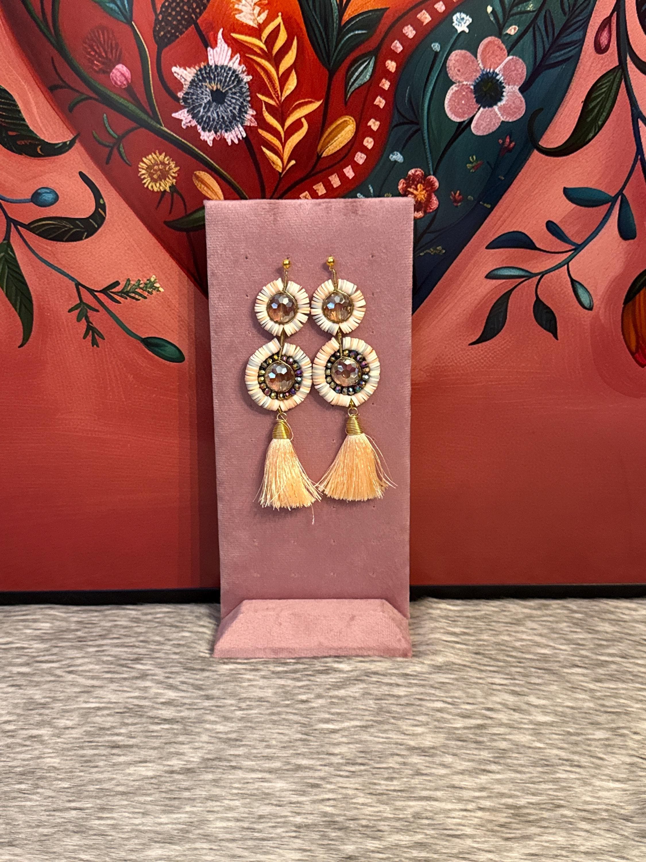 Handmade earrings made with handmade pucca and Czech crystals.
