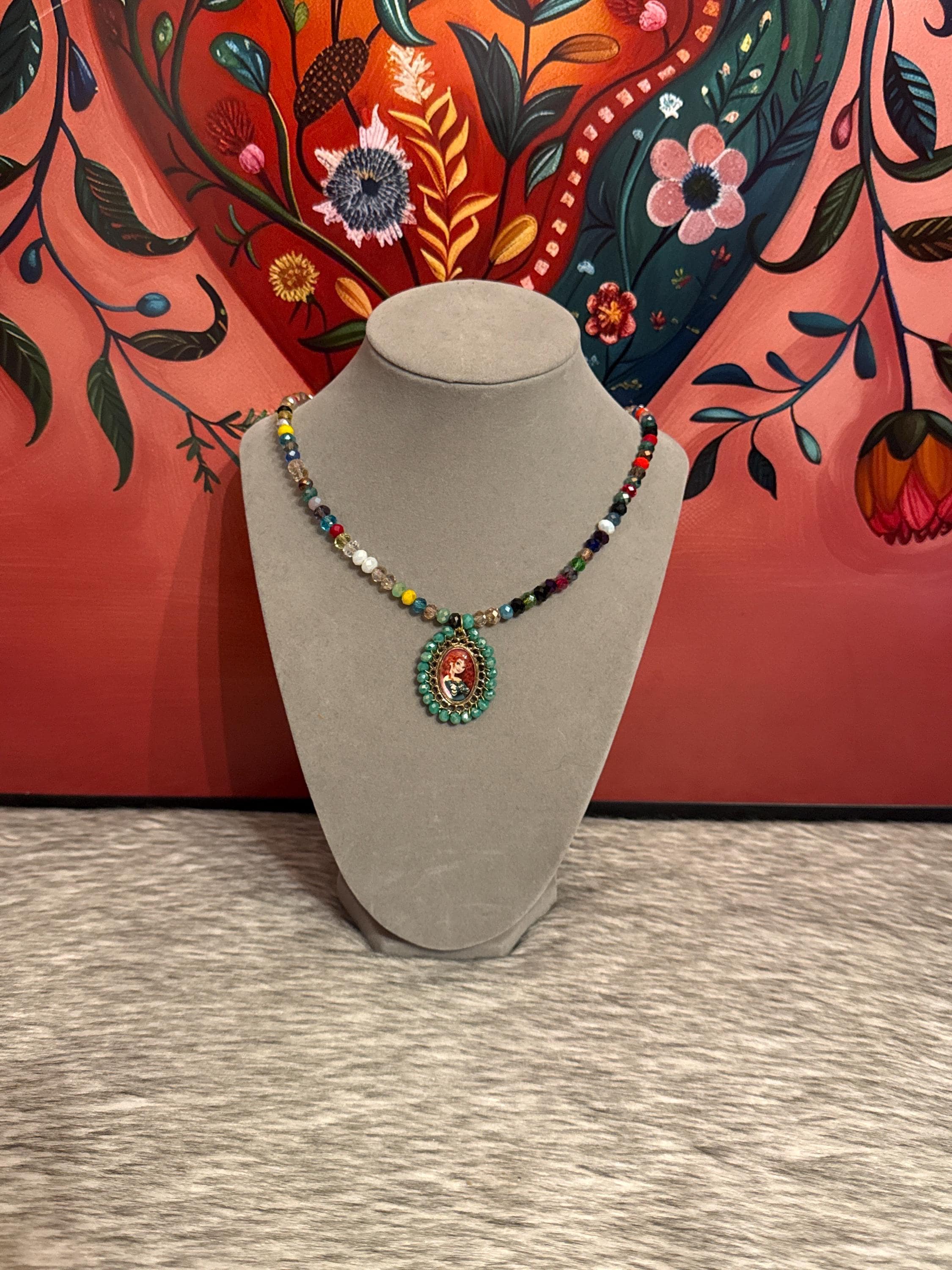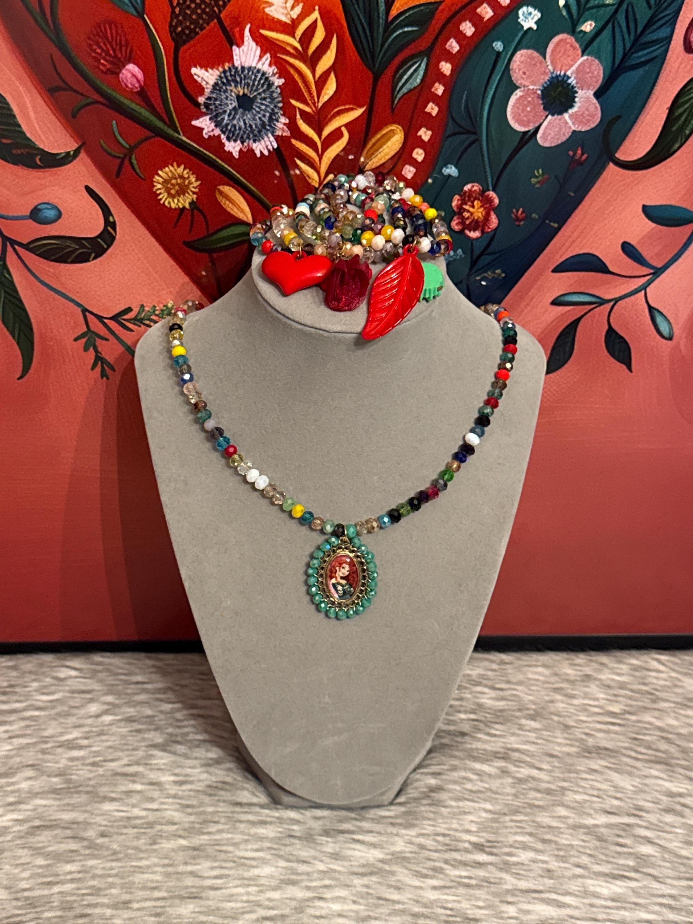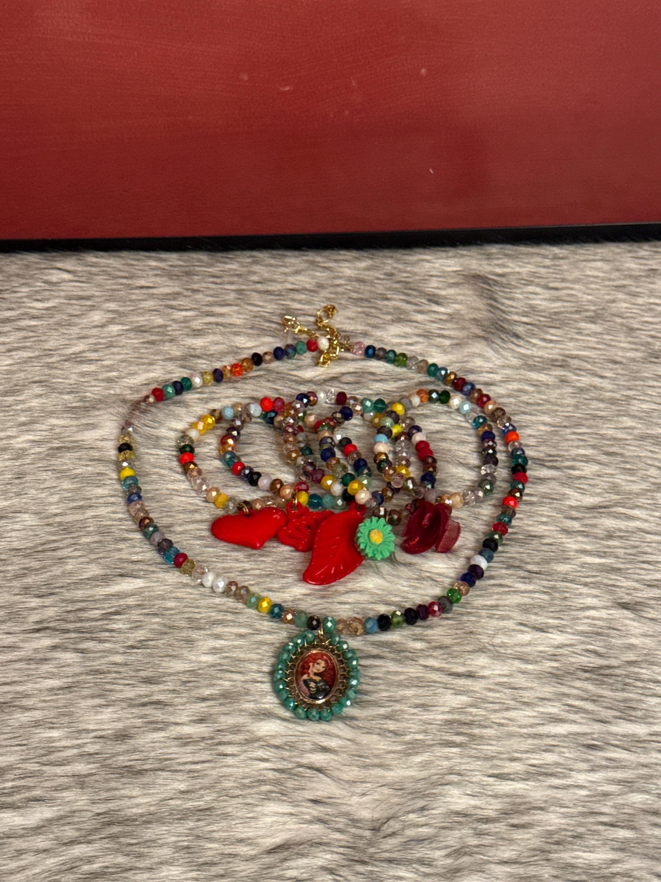 Crystal necklace set with embroidered pendant featuring Czech crystals and 5 crystal bracelets; they too deserve to look beautiful like princesses. For girls.